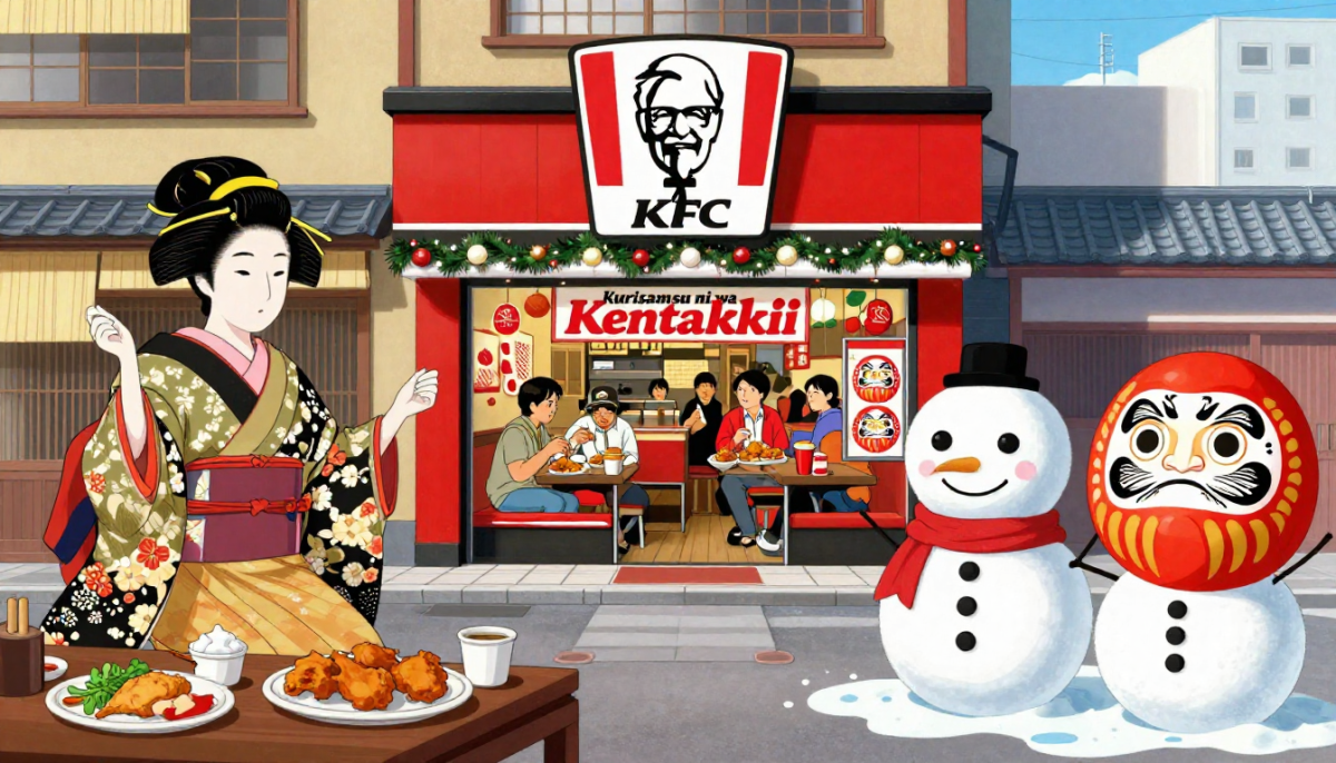 La storia del pollo natalizio di KFC è un classico esempio di ingegneria di marketing. Nel 1974, la filiale giapponese della catena ha lanciato la campagna Kurisumasu ni wa Kentakkii - "Kentucky a Natale". In un paese dove il Natale non era una tradizionale festa familiare, l'azienda ha effettivamente offerto uno scenario pronto per la celebrazione. I consumatori l'hanno accettato non per il significato religioso, ma per la comodità. Non è una "stranezza nazionale", ma una strategia commerciale vincente.